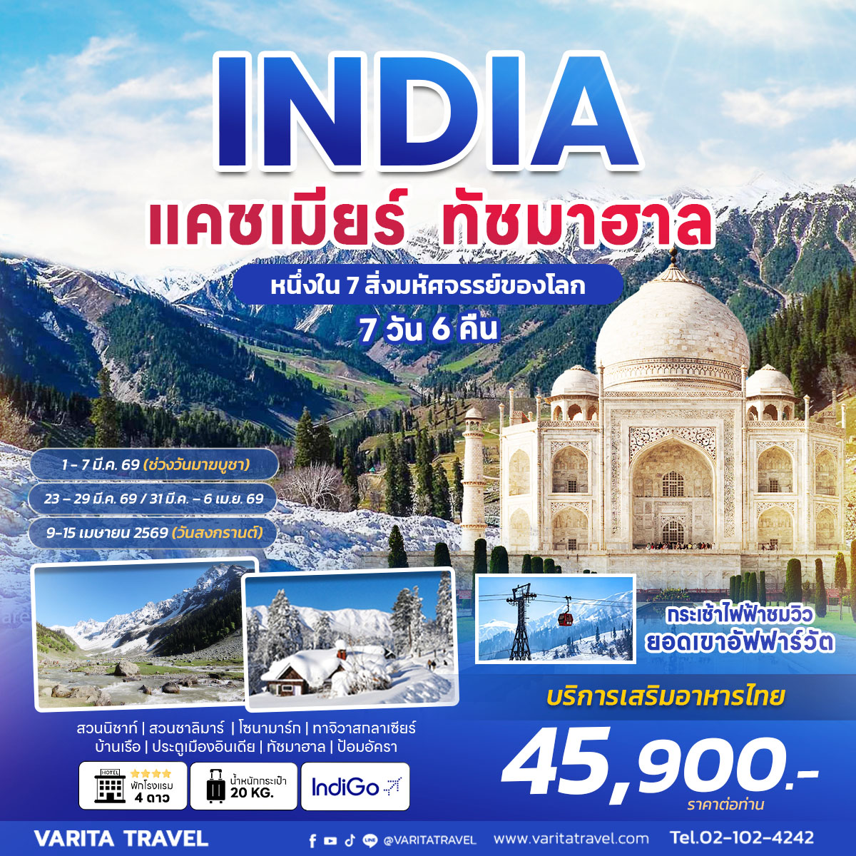 ทัวร์อินเดีย อินเดีย-แคชเมีย-ทัชมาฮาล 7 วัน