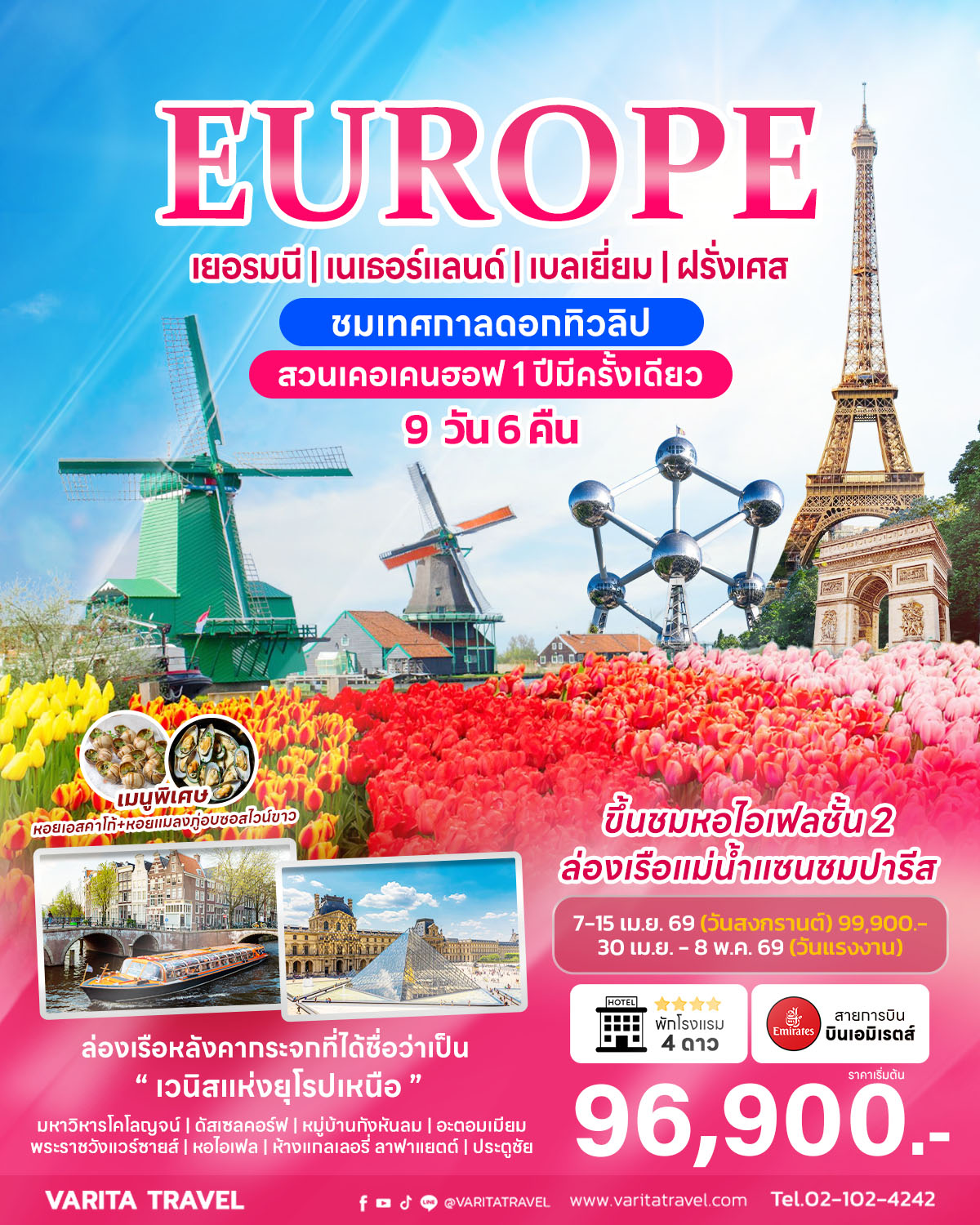 ทัวร์ยุโรป เยอรมนี-เนเธอร์แลนด์-เบลเยี่ยม-ฝรั่งเศส 9 วัน 6 คืน ชมเทศกาลดอกทิวลิป (ช่วงวันหยุดสงกรานต์)