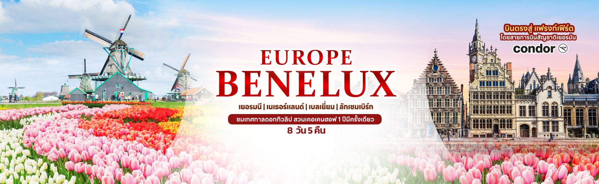 ทัวร์ยุโรปเบเนลักซ์ 8 วัน 5 คืน ชมเทศกาลดอกทิวลิป (ช่วงวันหยุดสงกรานต์)