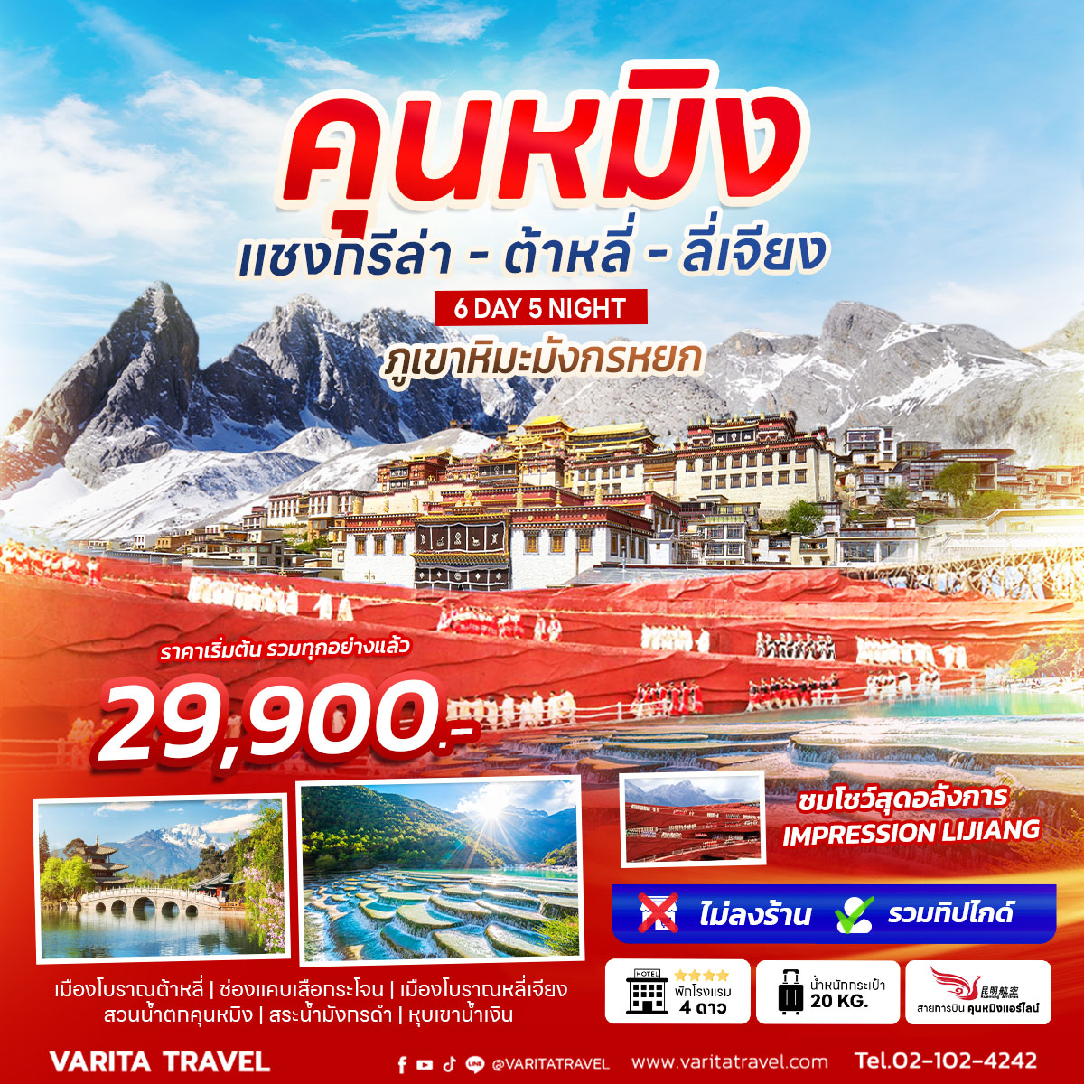 ทัวร์จีน คุนหมิง-เเชงกรีล่า 6 วัน 5 คืน KY